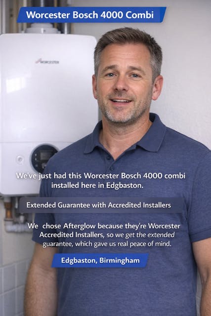 At Afterglow Plumbing & Heating, we specialise in straightforward boiler replacements for Birmingham homeowners who want a modern, energy-efficient boiler installed properly, at an agreed price.