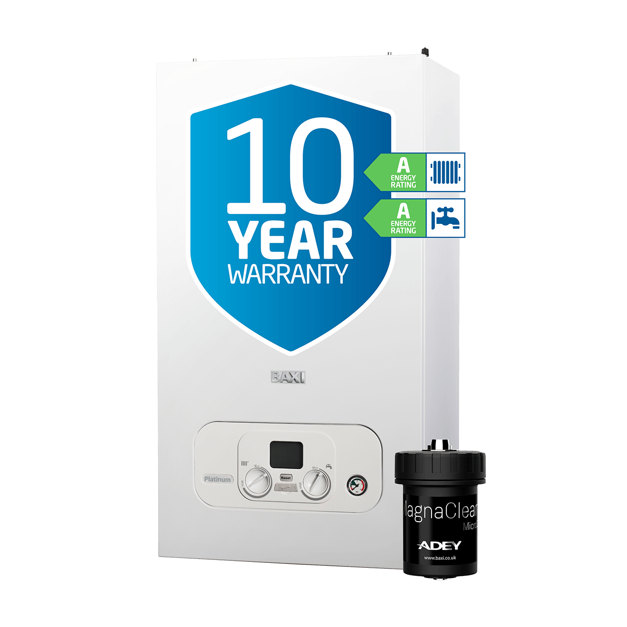 - Supply and installation of a modern, A-rated boiler